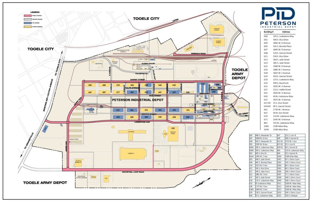 Located between Salt Lake City, Utah and California, Peterson Industrial Depot is an ideal location for distribution to the western United States. Peterson Industrial Depot is close to interstate 80 and only 30 minutes from Salt Lake International Airport.